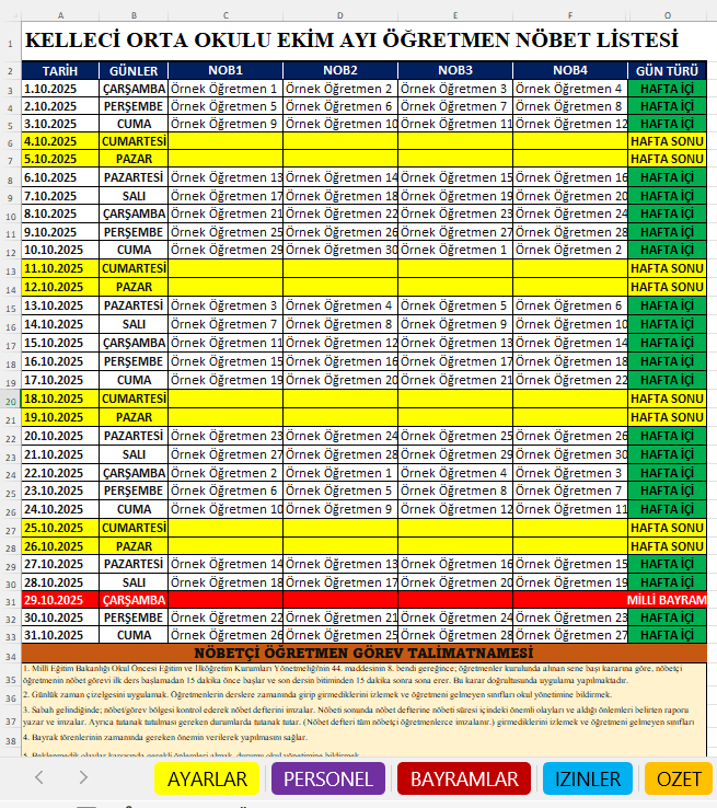 Nöbet listesi hazırlamakla uğraşan tüm okul idarecileri ve öğretmenler için uygundur.