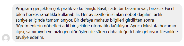 Şimdi sen de, Excel Öğretmen Nöbet Programı sayesinde zamanını geri kazanacak, adaletli dağıtım yaparak hem kendin hem de meslektaşların için huzur sağlayacaksın.