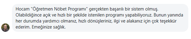 Bu sekme sayesinde öğretmenler arasında güven artar ve herkesin nöbet yükü eşit şekilde görselleştirilir.